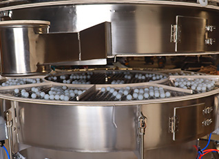 振動篩中的彈跳球上下運動,沖擊篩網(wǎng),從而防止或減少堵塞。振動篩的篩網(wǎng)是其重要組成部分。彈跳球巧妙地安裝在篩網(wǎng)和母網(wǎng)之間。這些彈跳球通過其獨特的沖擊作用,可以減弱物料在篩網(wǎng)上的粘附力,從而實現(xiàn)篩網(wǎng)清潔。母網(wǎng)的作用是提高物料通過篩網(wǎng)的效率。
